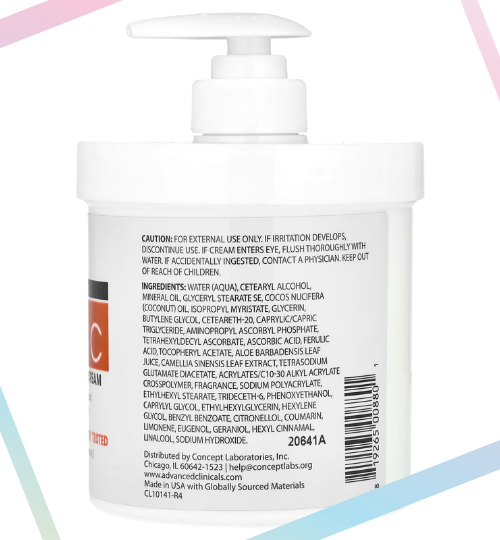 La crème éclaircissante Advanced Clinicals Vitamine C 454g combine des actifs puissants pour hydrater, éclaircir et revitaliser la peau.