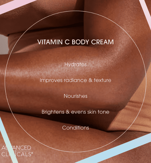 La Crème éclaircissante à la Vitamine C Advanced Clinicals est une crème pour le corps fabriquée aux États-Unis. Elle associe des ingrédients nourrissants et antioxydants pour hydrater, éclaircir et améliorer l’apparence de la peau.
